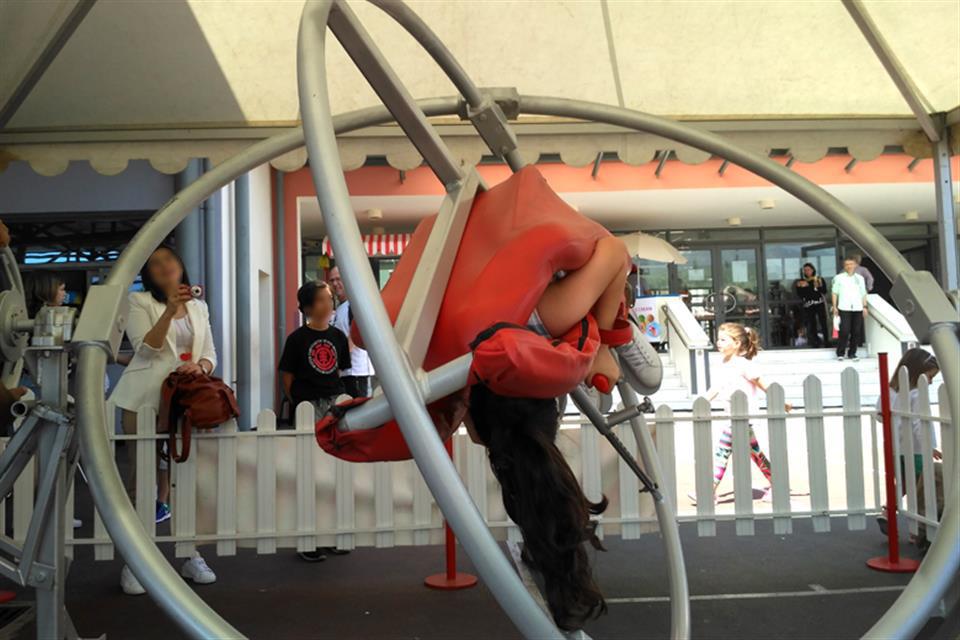 The trainer secures the participant with the special mechanism and the rotation starts!