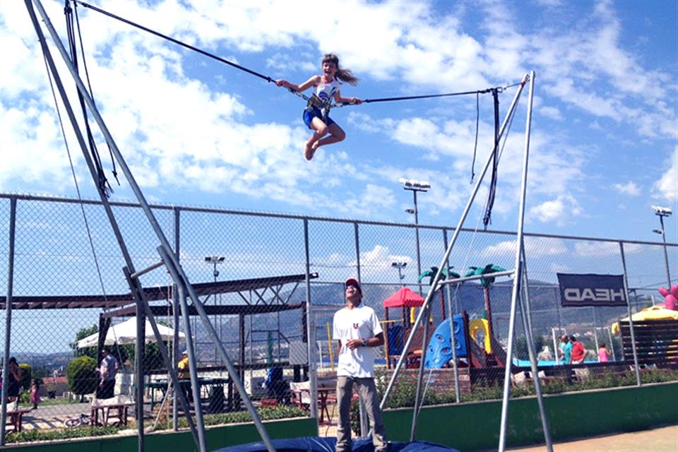 Το μονό Bungee Trampoline προσφέρει την ανεπανάληπτη εμπειρία του να πετάς έως και 5 μέτρα από το έδαφος, δεμένος σε λάστιχα που «απογειώνουν» την αδρεναλίνη.